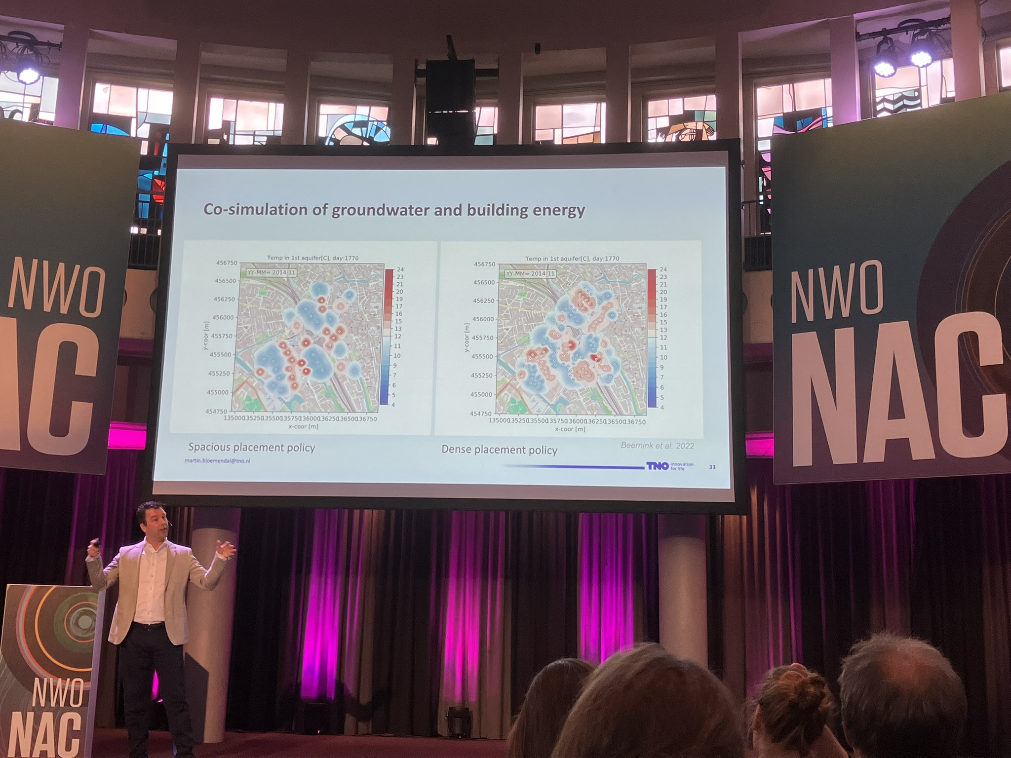 Tussendoor was er ook nog voldoende tijd om interessante presentaties bij te wonen. In sommige gevallen sloot het onderwerp perfect aan bij de onderwerpen waar we bij KWR aan werken; zo kwam een onderzoek van Stijn Beernink uitgebreid naar voren in de keynote van oud-collega Martin Bloemendal over de inrichting van de ondergrond in stedelijk gebied. Veel presentaties belichtten vraagstukken die ook bij KWR spelen, maar dan vanuit een heel andere invalshoek, zoals het gebruik van koolmezen om de verspreiding van pesticiden te monitoren