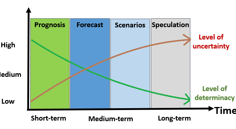 Voorspellende modellen en scenario-ontwikkeling effectief en zinvol inzetten vraagt om aandacht voor de onzekerheden en een aanpak die met die onzekerheden zo veel mogelijk rekening houdt (after Nekkers, 2006: Wijzer in de Toekomst. Werken met toekomstscenario’s).