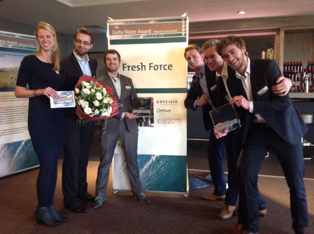 Five teams of young talents from the water sector worked together to respond to the 2015 Delta Award challenge: ‘Develop an innovative and sustainable project that proposes solutions for the freshwater problems in the South-West Delta’. The current and future supply of freshwater in the South-West Delta cannot be taken for granted. But for farmers freshwater is indispensible. During the winter, in the area around the South-West Delta, there are large amounts of freshwater available from surface water sources and the river water pipeline. This water offers opportunities. With the award-winning app, the farmers can calculate whether the Freshmaker might offer them a good solution. Fresh Force also developed a funding possibility for farmers, which enables them to make use of the Freshmaker technique.