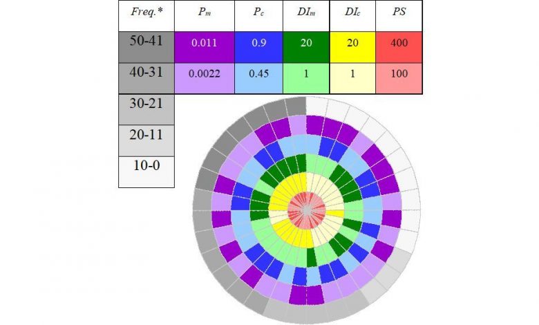 We have taken analogy with the concentric rings of the Feng Shui compass (Figure 1) to visualize the performance of an optimization algorithm based on combination of parameter values shown in concentric rings (Figure 2). Basically, we performed multiple runs of the optimization algorithm on the same design problem with 5 parameters within their extreme ranges (min/max).