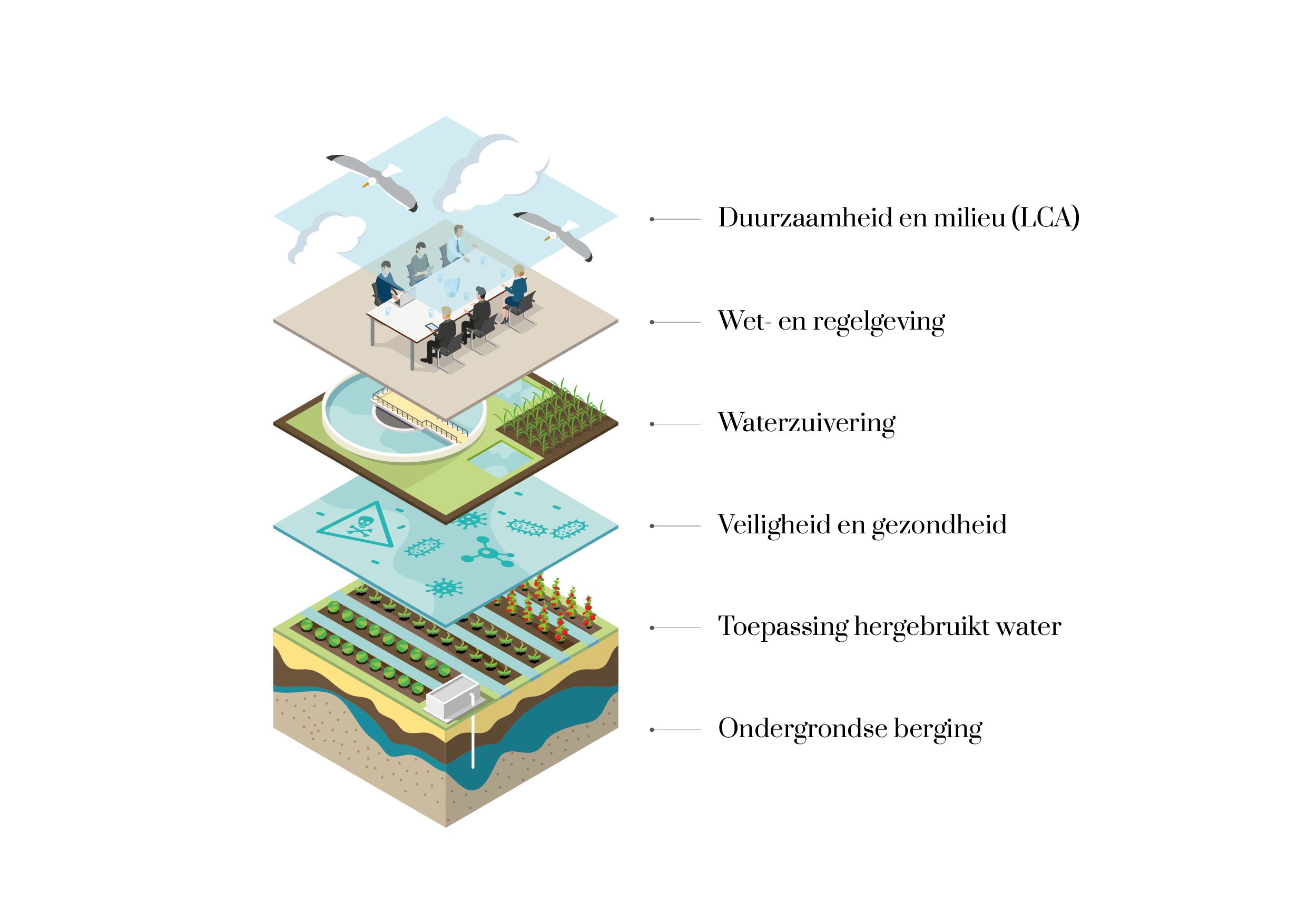 The availability of sufficient and reliable freshwater is under pressure worldwide. Climate change, deteriorating water quality, land subsidence, population growth, and rising water demand present new challenges for water management. In this context, there is an urgent need to use water more efficiently and to close water cycles.