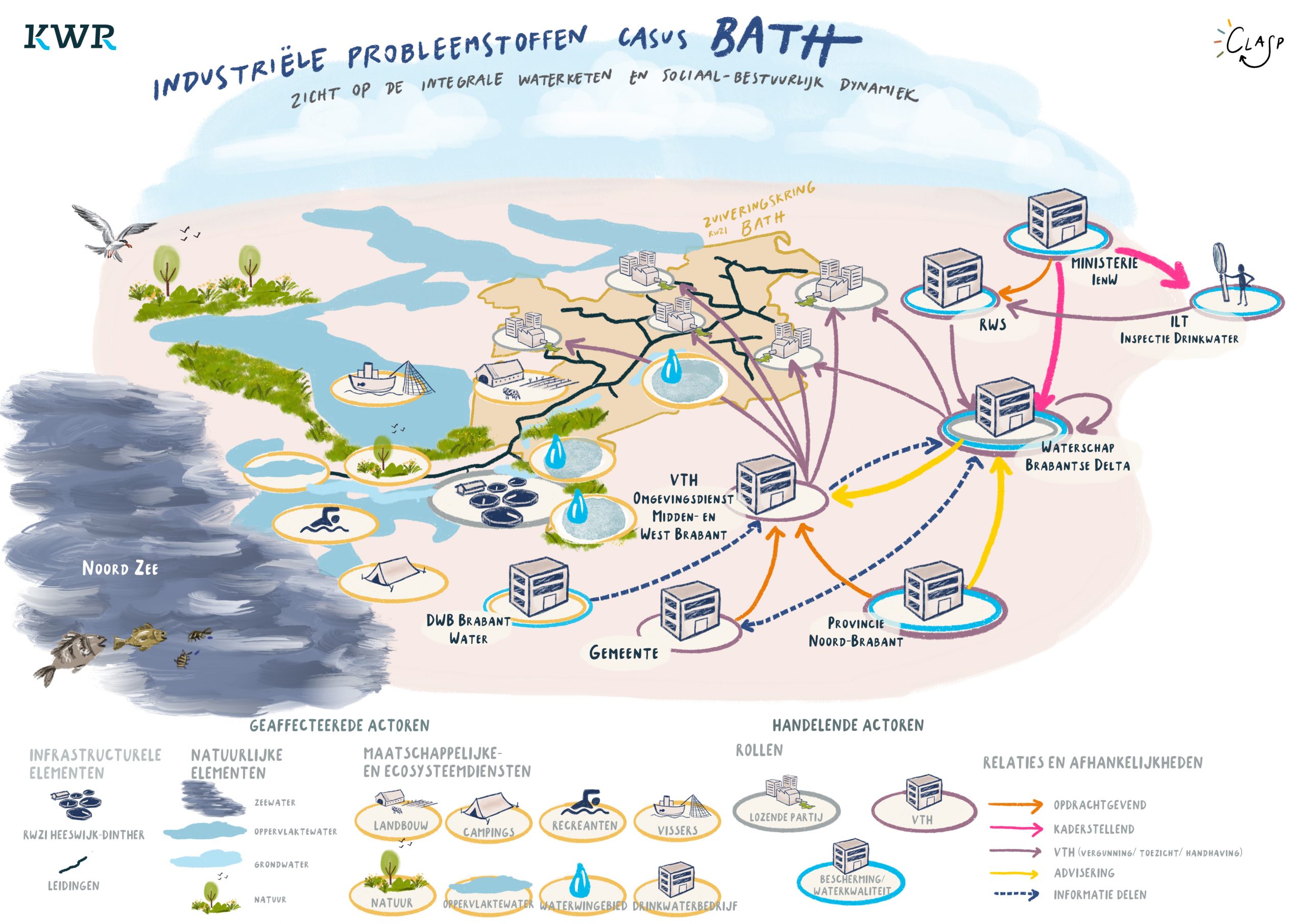 Industrial problem substances are increasingly present in surface and water groundwater, posing a threat to public health through drinking water and food supplies, as well the health of nature, and therefore the economy. The Breaking Barriers down for Water Quality project examines how parties in the water chain can work together more effectively to safeguard water quality and reduce levels of industrial problem substances in indirect discharges. In a process of research by design, Environmental Service Midden- en West-Brabant, the Brabantse Delta water authority, the provincial authority of Noord-Brabant, municipal authorities, and Rijkswaterstaat Sea and Delta are discovering and strengthening integrated collaboration.