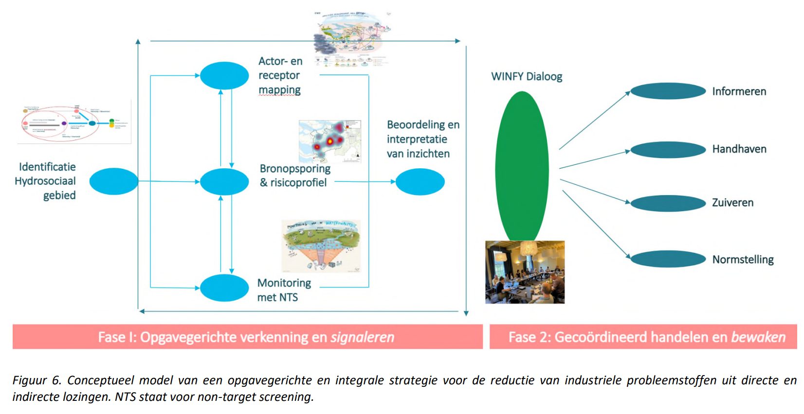 One of the results of this research is a conceptual model for an integrated approach to industrial problem substances. A starting point is the targeted demarcation of the integrated water chain on the basis of the source-path-receptor principle. The next step is to identify the affected stakeholders and actors in this defined area, trace sources and monitor influent or effluent in smart ways. Stakeholders can then collectively interpret and assess the insights to arrive at integrated approaches to industrial problem substances.